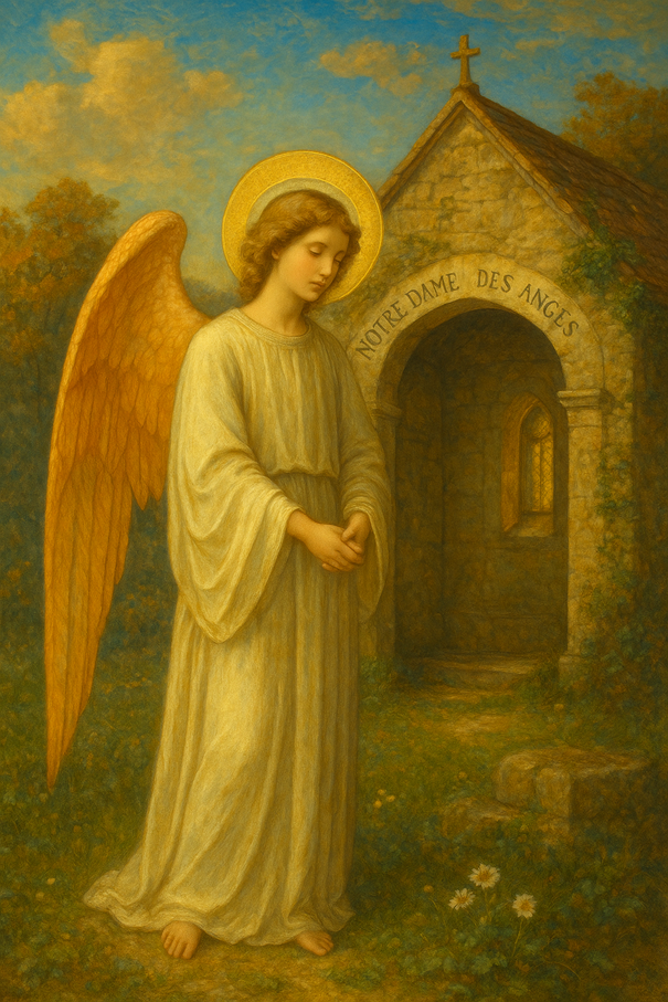 Il vit là, dans la petite chapelle Notre-Dame des Anges, au milieu des herbes folles et des pierres fendues. On ne le voit pas avec les yeux, mais avec le cœur.